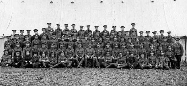 Em 28 de junho, Tolkien, com 23 anos, se alistou nos Fuzileiros de Lancashire, escolhendo a unidade porque estava cheia de homens da Oxford. Isso era típico do recrutamento do Exército britânico na época, homens jovens se reuniam em massa por cidade, escola ou comércio, organizados em regimentos que ostentavam nomes tão estranhos como os comerciais de Tyneside ou os Manchester Pals.