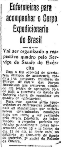 Em 09 de outubro de 1943, houve uma chamada publicada no jornal “O Globo” para as enfermeiras que foram selecionadas após iniciarem seu voluntariado, as quais ingressaram no Curso de Emergência de Enfermeiras da Reserva do Exército (CEERE), que comportou três módulos: parte teórica, preparação física e instrução militar