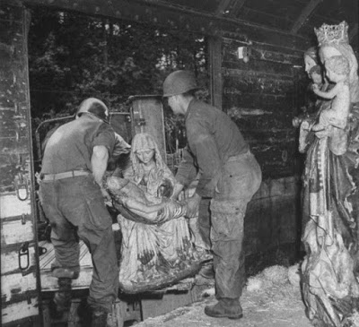 Em Paris, em 1939, o Louvre foi esvaziado, sendo 3600 obras cuidadosamente embaladas e guardadas em casas seguras. A tão conhecida Monalisa foi transportada cinco vezes pela França, passando de castelo para abadia, da abadia para o castelo, mantendo a obra sempre um passo à frente dos alemães.