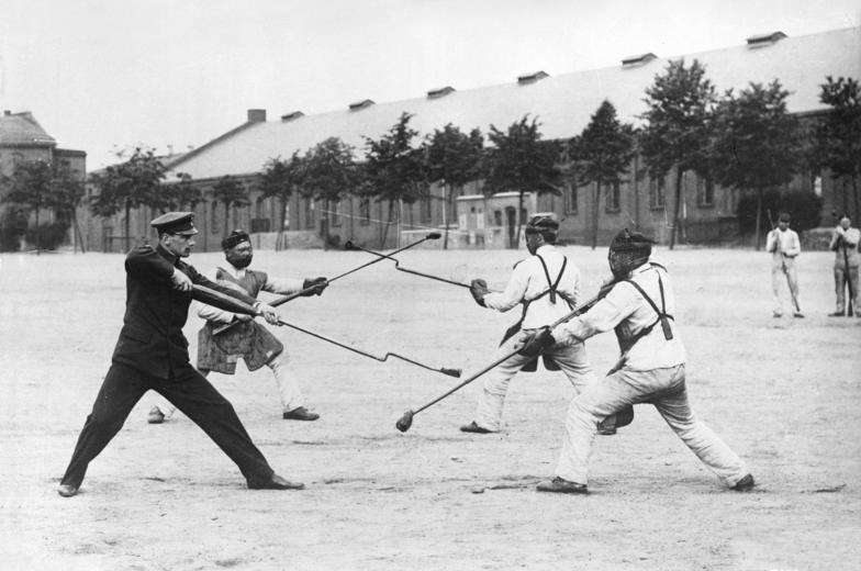 O manual de treinamento do Exército Britânico, "Bayonet Training" de 1918, afirmou que "a luta corpo a corpo com a baioneta é uma matança individual […] a matança ocorre de perto, a uma distância de 2 pés ou menos, quando as tropas estão lutando com um corpo em trincheiras".
