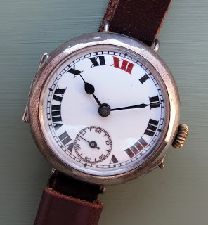 Relógio de trincheira antigo em prata de lei com uma marca registrada de 1914.