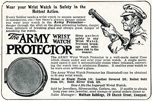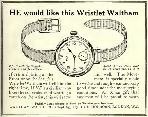 Embora os relógios de pulso tivessem sido usados por homens antes da Grande Guerra para fins especiais, por exemplo, quando andavam de bicicleta ou de balão, em outros momentos antes da guerra era esperado que um homem carregasse um relógio de bolso.