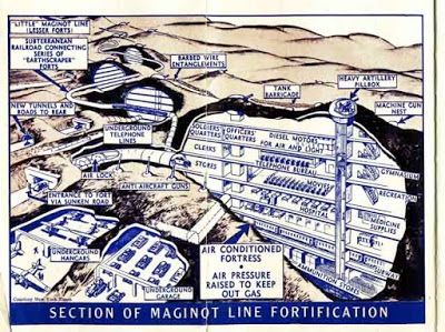 A linha Maginot era uma linha de fortificações construída pela França na década de 1930 para impedir a invasão da Alemanha. Com base na experiência da França com a guerra de trincheiras durante a Primeira Guerra Mundial, a enorme Linha Maginot foi construída no período que antecedeu a Segunda Guerra Mundial. Especialistas militares franceses enalteceram a Linha como uma obra de gênio que deteria a agressão alemã, porque retardaria uma força de invasão por tempo suficiente para que as forças francesas se mobilizassem e contra-atacassem.