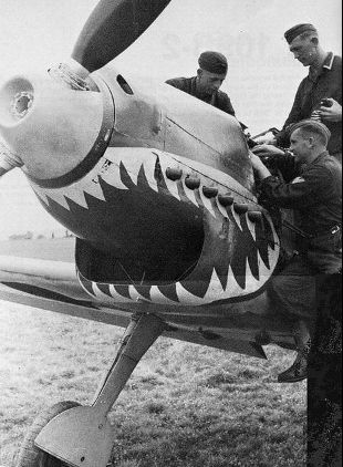 A boca do tubarão arquetípica, como a conhecemos hoje, apareceu pela primeira vez no nariz dos Tomahawks do Esquadrão 112 da Força Aérea Real, lutando no Norte da África.