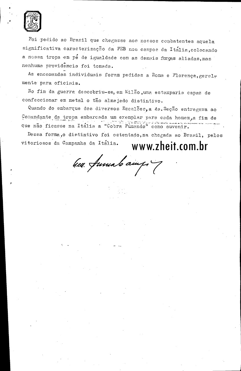 Quando do embarque dos diversos Escalões, a 4º Seção estregava ao Comandante da tropa embarcada um exemplar para cada homem, afim deque não ficasse na Itália a "Cobra Fumando" como suvenir.