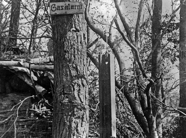 02- Um soldado alemão bate em uma frigideira suspensa para alertar sobre um ataque de gás.