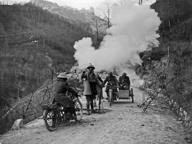 06- Por volta de 1916: Uma bomba de gás explode em um bloqueio na frente italiana.