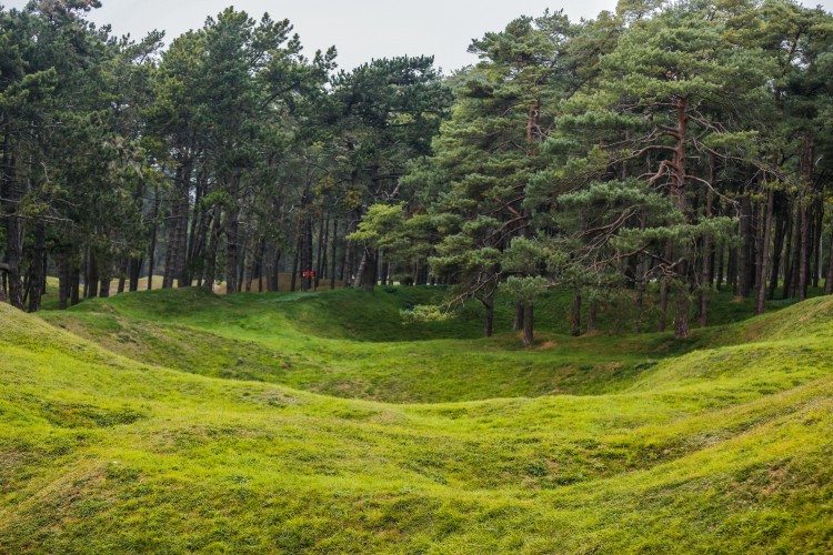 Trincheiras antes usadas pelos soldados, agora estão com vegetação, crateras de bombas ainda estão presentes para lembrar os horrores da Guerra. O terreno nunca se recuperou completamente onde milhares de homens perderam a vida por seu país.