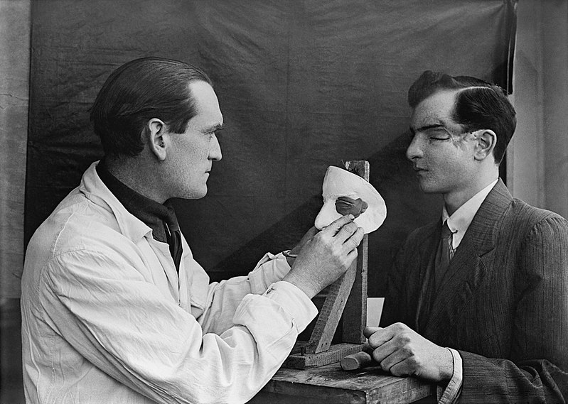Alguns soldados desfigurados durante a Guerra encontraram um rosto graças a uma oficina de escultura "Studio for Portrait Masks", criada pela artista americana Anna Coleman Ladd.