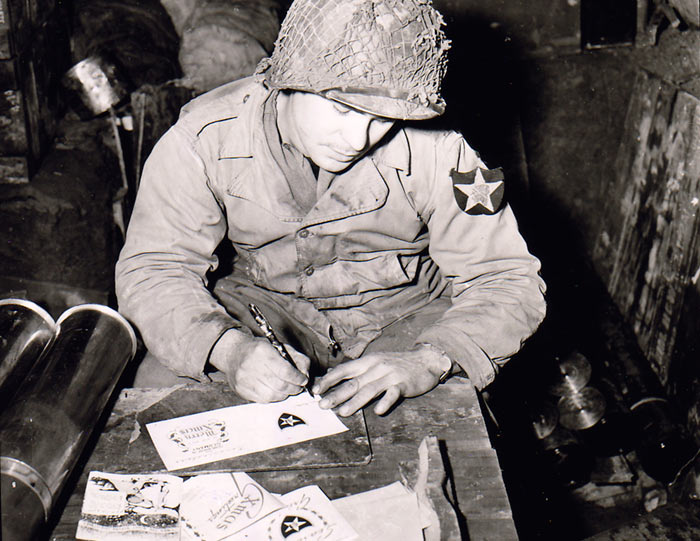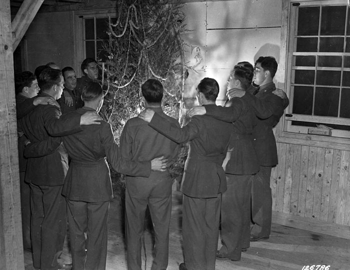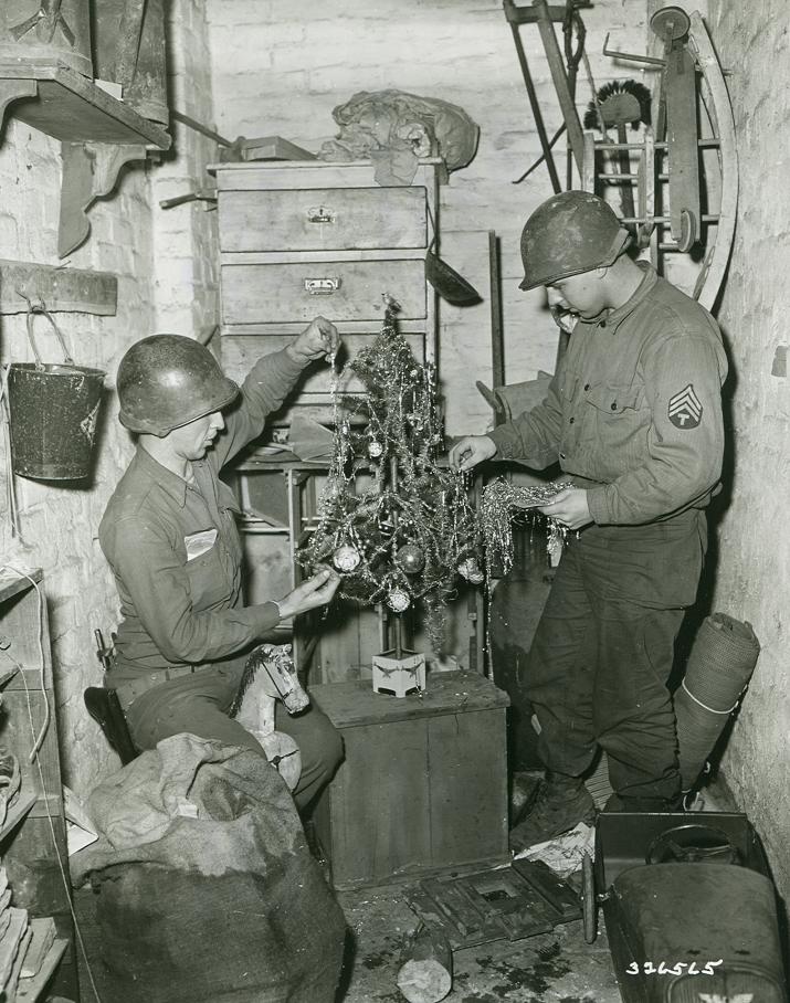 “Minha adorável esposa. Passei a maior parte do dia de Natal inspecionando as tropas da linha de frente e elas se saíram muito bem. A adaptabilidade do soldado americano é uma fonte inesgotável de espanto para mim. Há muitas árvores de Natal nos alojamentos das cidades ribeirinhas e até mesmo nas posições dos canhões, todas decoradas em grande estilo. Os ornamentos alemães são iguais aos nossos e saqueamos muitos deles. Sentinelas, patrulhas e tripulações de armas foram alternadas para que todos pudessem comer peru e alguns até mesmo assaram tortas e bolos".