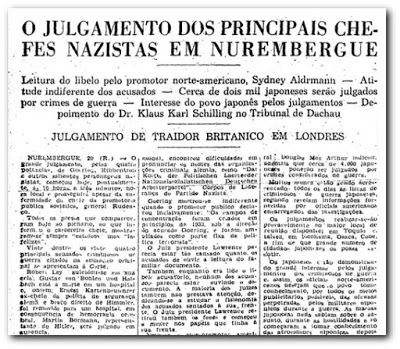 O Tribunal de Nuremberg foi uma corte internacional formada para julgar o alto escalão nazista logo após o final da II Guerra, por crimes contra a humanidade e crimes de guerra.