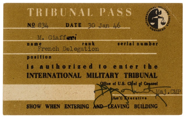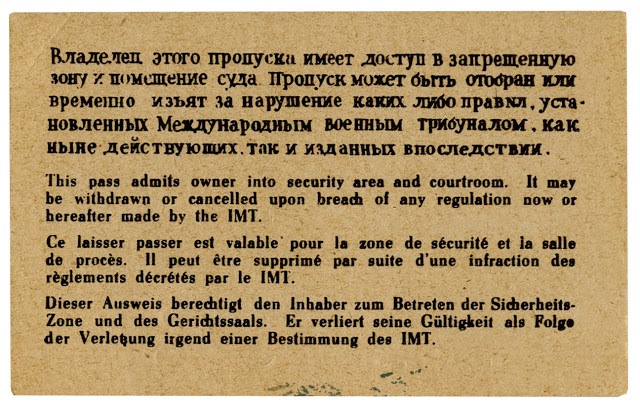 Cartão para o Julgamento do Tribunal de Nuremberg- datado de 30 de Janeiro de 46