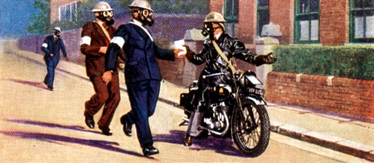 Esses cartões, produzidos pela empresa de tabaco WD & HO Wills, em colaboração com o governo, traziam lições sobre a criação de abrigos antiaéreos, o uso de máscaras de gás, a extinção de incêndios e várias outras maneiras de proteger a casa.