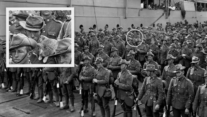 O ano é 1914, os soldados do Regimento Canterbury estão em Lyttelton prontos para embarcar em um navio com destino ao front. Um soldado está com um gato em seu ombro, talvez um companheiro para a longa viagem.