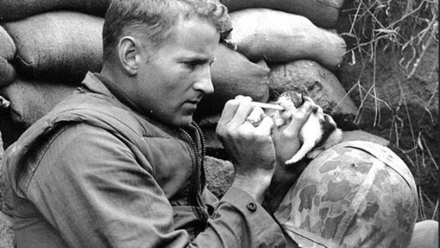 Um soldado da Nova Zelândia no Vietnã e seu felino de estimação.