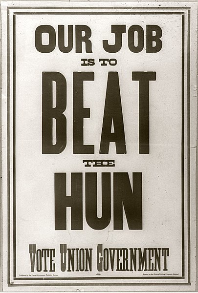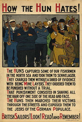 E então, nos primeiros meses da Primeira Guerra Mundial, os aliados aplicaram o termo 'Hun' às forças da Alemanha e da Austro-Hungria, a fim de evocar imagens de um inimigo bestial.
