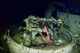 No naufrágio, é possível visualizar um reboque de aeronaves e armas antiaéreas.