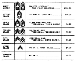 Em 1942 foi editada a Lei Pública 77-607, a "Lei de Reajuste Salarial", foi sancionada pelo Presidente Franklin Roosevelt, que instituia o método de calcular o pagamento de longevidade para o pessoal alistado da mesma forma que para os oficiais comissionados, ou seja, 5% do salário base para cada três anos de serviço, até um máximo de 30 anos.