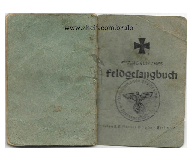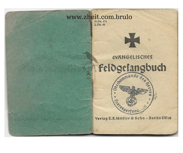 A Alemanha nazista pensando nisso, na moral e na fé transforam em parte dos equipamentos militar o Feldgesangbuch (livro de hinos religiosos)