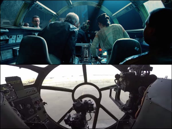 Outras referências que são muito legais (e bem nerds) é o cockpit do Millennium Falcon que é praticamente idêntico ao do B-29 Superfortress. Na Segunda Guerra, o B-29 foi um bombardeiro pesado de quatro motores projetado para bombardeiro estratégico de alta altitude. O B-29 se tornou particularmente famoso por realizar o ataques devastadores de bomba atômica em Hiroshima e Nagasaki em agosto de 1945.