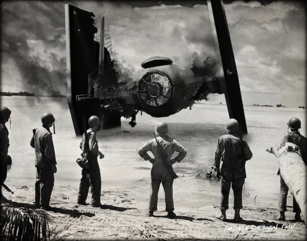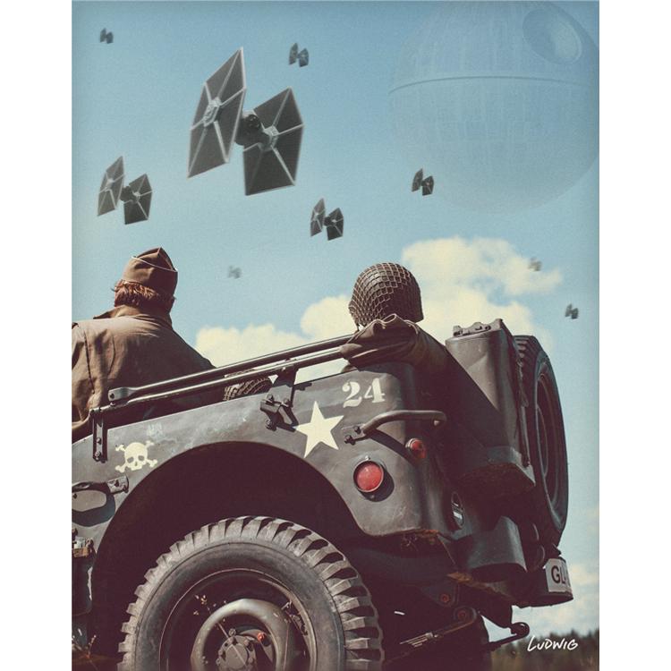 O artista Billy Ludwig lançou recentemente uma série de fotos em preto e branco da Segunda Guerra Mundial com sobreposições de Star Wars. Chamada de “SWVSWWII”, a coleção tira fotos clássicas de domínio público da Segunda Guerra Mundial e as define como pano de fundo das cenas de Star Wars. Veja mais artes no site.