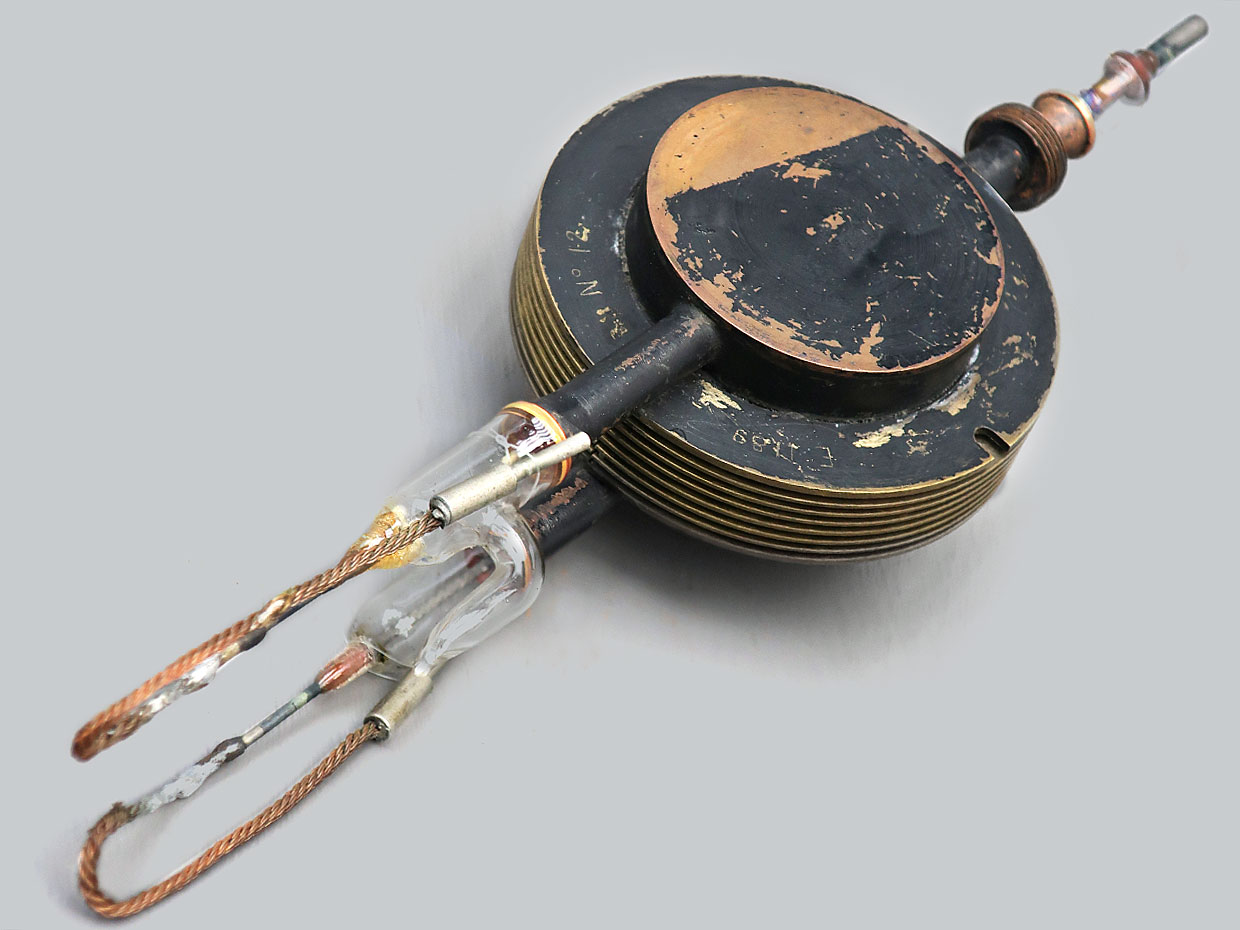 Dentro desta caixa, havia um dispositivo com tubos e fios que se estendiam até a extremidade. Esse dispositivo era chamado de magnetron de cavidade e produzia microondas de alta potência.