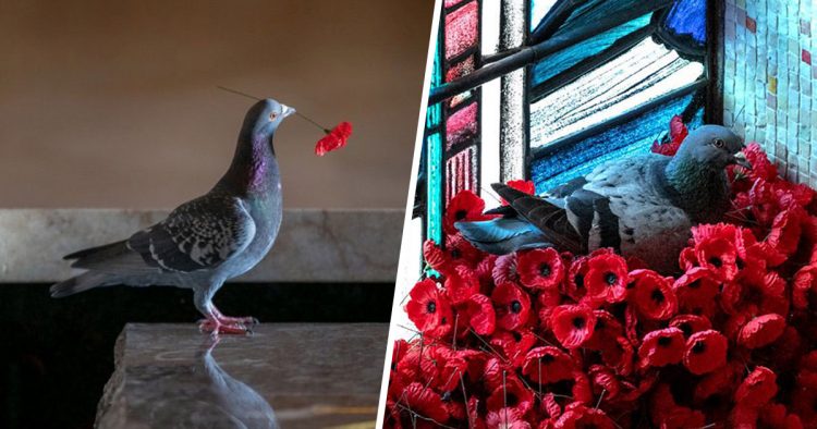 Até esse fato, não seria algo anormal, se o pombo não tivesse colocado centenas de papoulas para fazer seu ninho. As papoulas foram "roubadas" do túmulo de um soldado desconhecido.