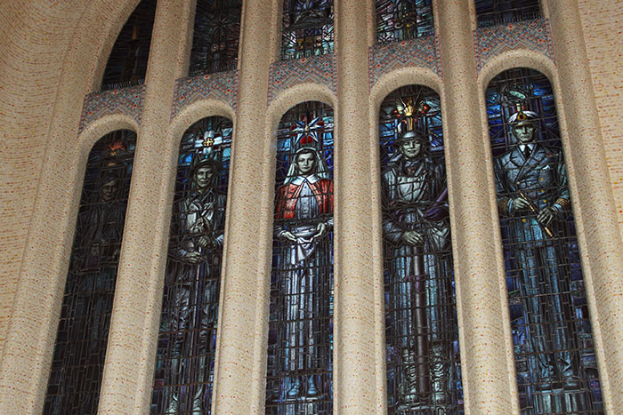 O vitral escolhido pelo pombo comemora os soldados feridos, um símbolo de resistência.