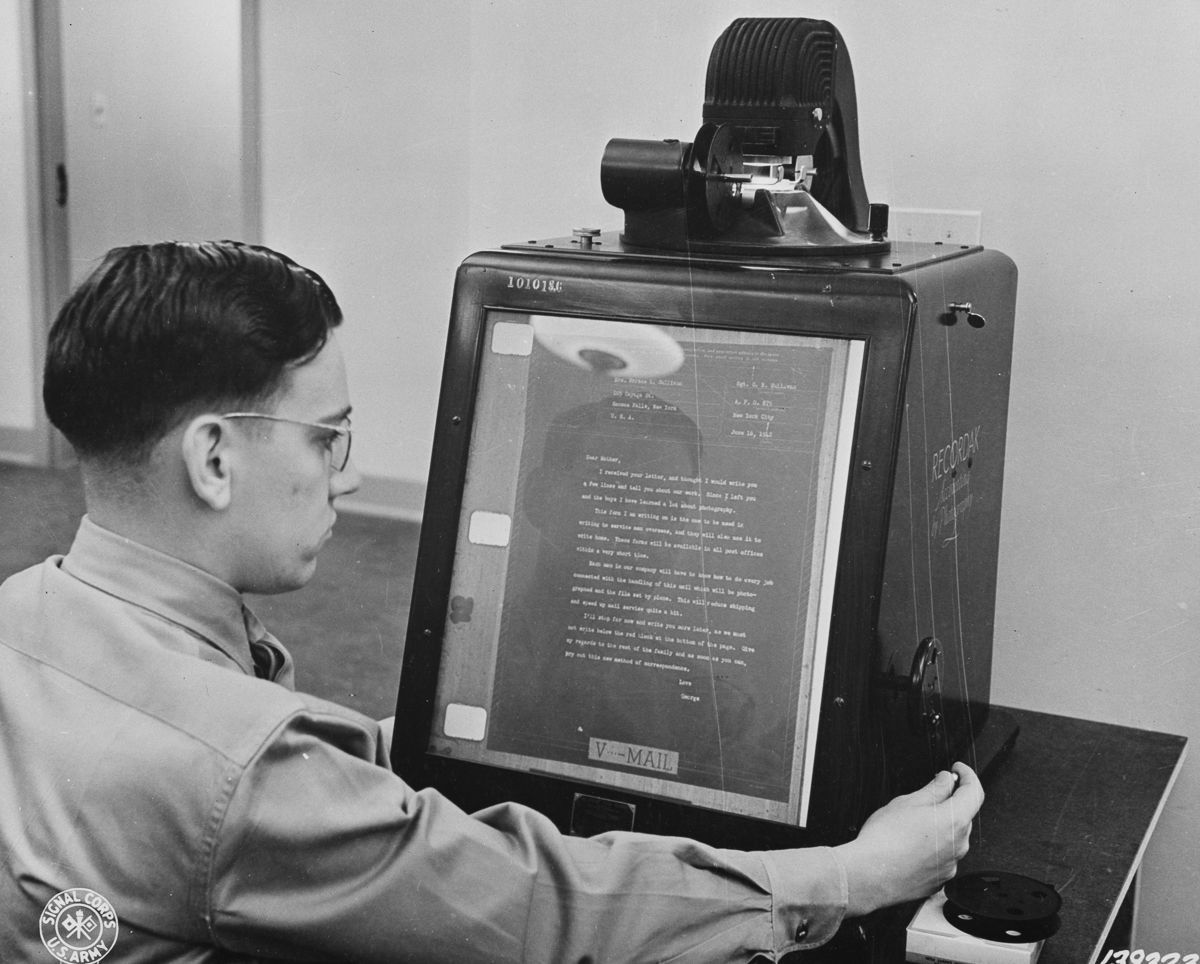 A correspondência em tempos de guerra era feita em pequenas folhas de papel padronizadas, que iria passar por censores, antes de serem fotografados e feitas miniaturas em negativo microfilme. Ao chegar ao seu destino, a carta era impressa em papel e entregue. Esse serviço foi projetado pela Eastman Kodak foi lançado em 15 de junho de 1942 e tornou-se o principal método de comunicação entre soldados na linha de frente e a família e mostrou ser extremamente eficaz.